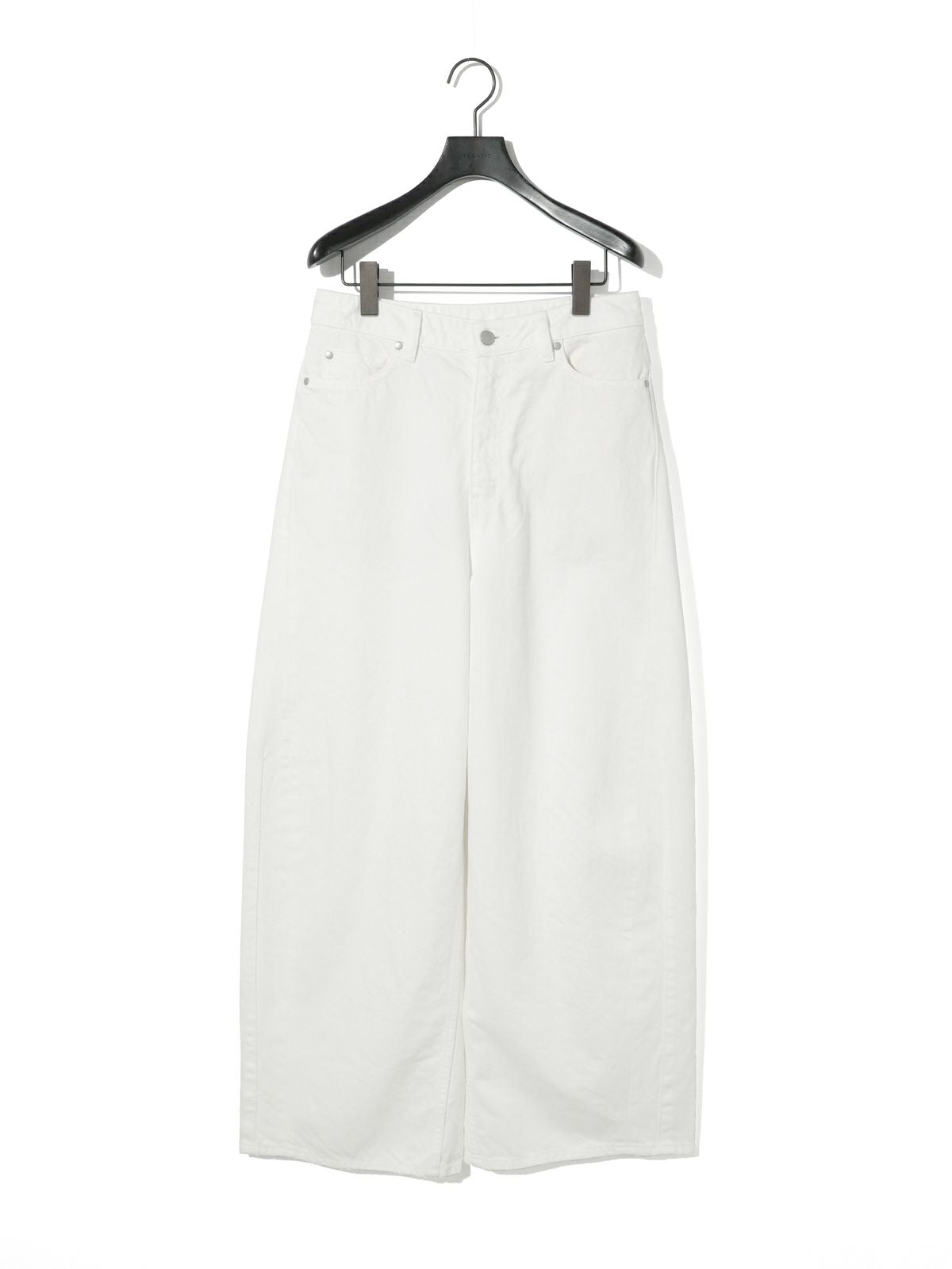 定番12オンスのデニムの新型、バレルレッグワイドデニムです。腰回りから膝がすっきりしたシルエットを表現。膝下からはボリューム感があり丸みがあるシルエットになるバレルシルエットが特徴。ウエストの位置でシルエットを変化していただけるのでコーディネートを楽しんでいただける1枚です。